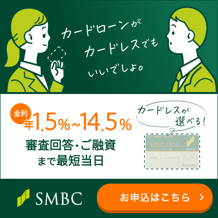 | 三井住友銀行 | 10万円~800万円まで | 最短当日 | 申し込む |